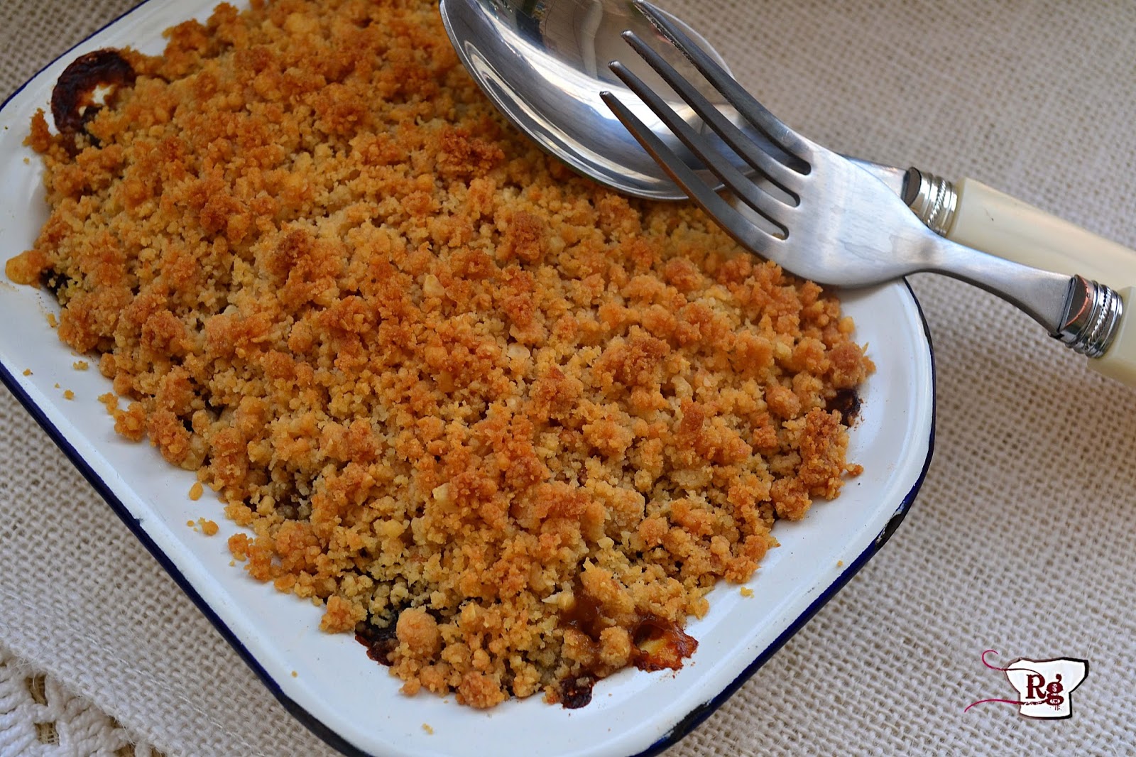 Realmente la traducción de la palabra " Crumble " al español es "Desmoronarse" y Wikipedia, nos cuenta que "Crumble" es un pastel con frutas. Me quedo con la traducción literal, porque realmente la cobertura crujiente de mi receta, se desmorona al servirla.