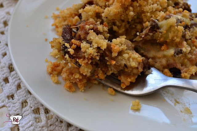 Se llame como se llame la receta se ve bien rica y debajo de esa capa granulosa habrá carne jugosa y rica...seguro!!.